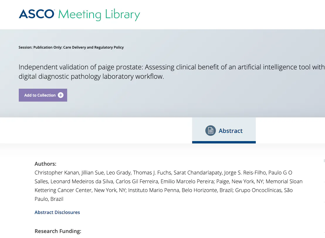 Paige is committed to creating products that help pathologists make informed and efficient diagnoses. We build AI-based digital diagnostics delivered via an interoperable enterprise imaging platform that, together, are designed to drive diagnostic confidence and a more productive pathology workflow. The same Paige technology also empowers life sciences companies to evaluate treatment options for patients and design new biomarkers so that every patient gets precise treatment options.